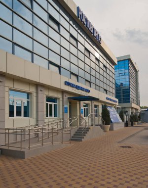 CP logosuna sahip modern Castanheira do ribatejo tren istasyonu, açık mavi gökyüzü altında, Portekiz komboios tarafından işletiliyor.