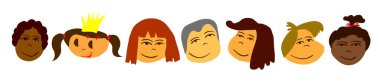 Siyahi çocukların şirin çizimleri. Erkekler ve kızlar vektör illüstrasyonu.