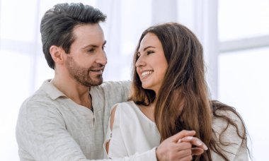 Kahverengi arka planda mutlu kız ve baba