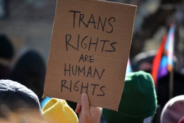 St. Paul, MN, ABD 5 Nisan 2025: Trans hakları savunucusu Hands Off! Minnesota Eyalet Meclisi 'nde miting.