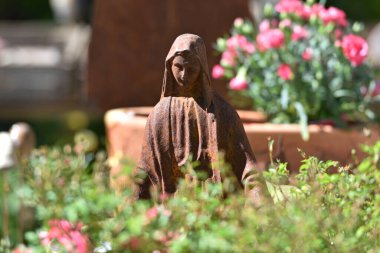 Sanatçılık ve doğanın uyumlu bir karışımı merkezi taştan bir heykel, yemyeşil ve stratejik olarak yerleştirilmiş kayalarla iyi tasarlanmış bir bahçeyi gösteren bir resim net sk Kiev, Ukrayna 06-11-2024