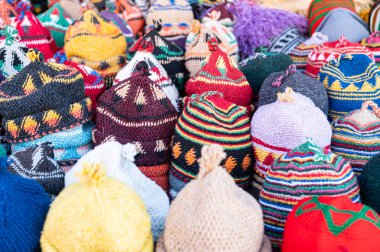 Vietnam 'da Asya pazarındaki tezgahta örülmüş kadın çantaları.