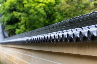 "Geleneksel Japon Tapınağı Duvarına Sessiz Yağmur Düşüyor