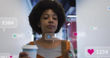 Akıllı telefonun kilidini açan kadın takipçileri kontrol ediyor, sosyal medya tezgahları kuruyor, yükseliyor ve zayıflıyor. Dijital bağlantı, sosyal ağ, mobil teknoloji, modern yaşam tarzı, kullanıcı etkileşimi, bağlantı, canlı