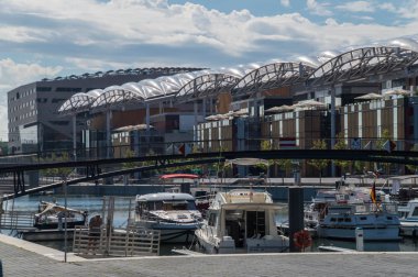 Barcelona, İspanya - 02 Mart 2024: Vell limanı veya Barcelona 'daki eski liman manzarası