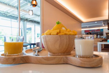 Espresso tonik, buzlu latte ve buzlu kibrit gibi içkilerle dolu bir sehpa.