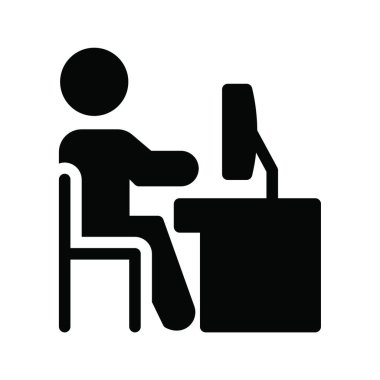 Masa başı simgesinde dizüstü bilgisayarda çalışan kişi