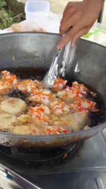 Dışarıda çıtır çıtır, yumuşak Sumedang tofusu Endonezya 'da lezzetli bir aperatiftir, acılı ve pirinçli..