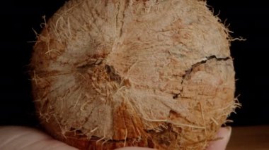 Dikey video. Beyaz Mangosteen 'in Yakın Çekimi Siyah Arkaplana Karşı Yavaş Hareket Ederken Zarifçe Havada Dönüyor