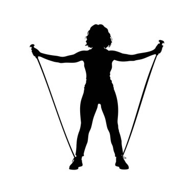 Genç kadın zıplıyor, zıplıyor, ip atlıyor, vektör çizimi.