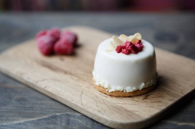 Lezzetli bir şekilde hazırlanmış mini tatlılar servis tepsisinde bir pastanede tatmaya hazır.