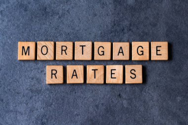 Düşük mortgage oranları metin 3d ev tahta üzerinde