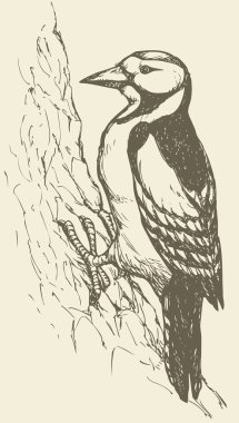 Bir çizgi film ağaçkakanı eğitici renkler için harika bir ağaca tutunuyor.