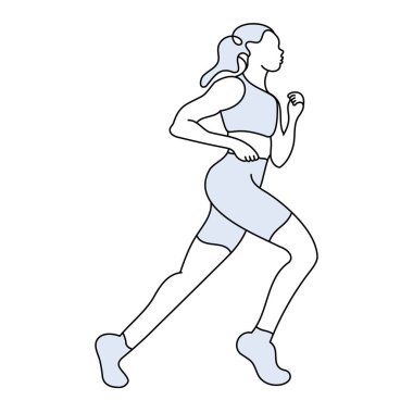 Bu, koşan bir kadının enerjik ve canlı bir çizimi, sağlık ve zindelik içeriği için ideal.