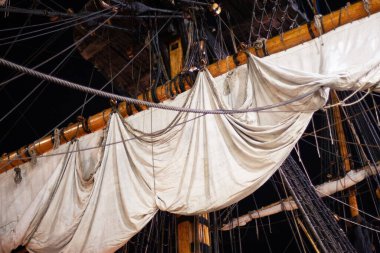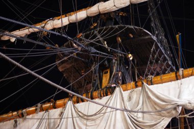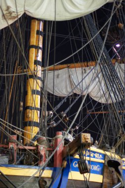 Paris, Fransa - 05 09 2025: Brest Arsenal 'in model atölyesine atfedilen üç güverteli bir geminin ayrıntıları