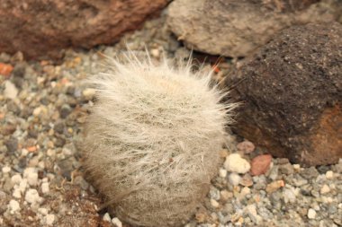 Yapay yaşam alanındaki Euphorbia Horrida 'yı kapatın, çöldeki kayalık topraklarda taşlarla yaşayın. Resim fotoğrafı.