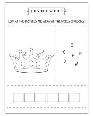 Çizgi film yengeci ve "yengeç" kelimesinin eğlenceli ve eğitici bir şekilde hecelendiği çocuklar için bir çalışma tablosu..