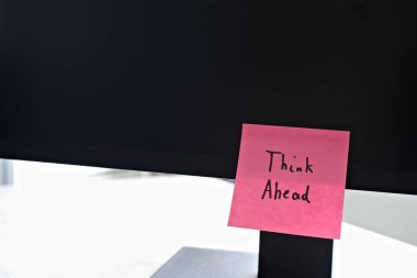 İş yeri. Çevrimiçi eğitim kavramı. E-öğrenme. Online eğitim. Laptop ve yapışkan notlar, el yazısıyla yazılmış öğretmenler ve mutlu, üst görünüm, kopyalama alanı, afiş. Modern çalışma ortamı.