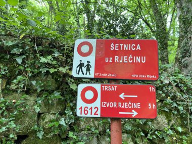 İtalya 'daki Como Gölü' nde Sentiero Del Viante 'nin tarihi yürüyüş yolunu gösteren bir işaret. Yüksek kalite fotoğraf