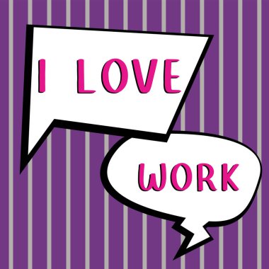 Yaratıcı iş sloganına bayılıyorum. Kırmızı kalpli el yazısıyla yazılmış mektuplar. Yazılı t-shirt, afiş, poster, çıkartma veya etiket için modern tasarım harfleri.