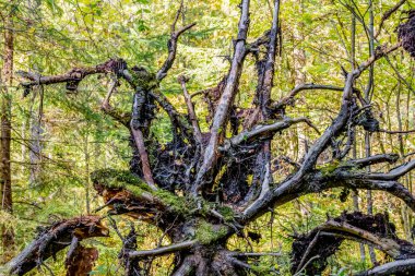 Almanya 'nın yemyeşil ormanlarında devrilmiş bir ağaç gövdesi