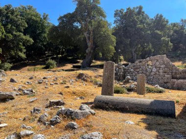 Serri 'deki Santa Vittoria' nın Nuragic Tapınağı 'nın bir parçası olan su dolu antik taş kaplı kutsal kuyu.