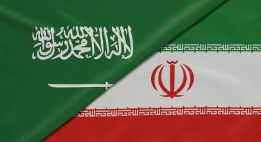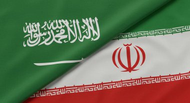İRAN ve SAUDI ARABIA bayrakları gerçekçi kumaş dokusuyla