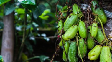 Bir ağaç gövdesinde büyüyen Yeşil Yıldız Meyve 'nin yakın görüntüsü