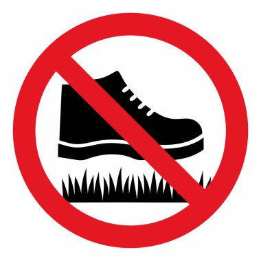 Basit, net bir vektör grafiği. "Çimenden uzak durun, ayakkabıya izin yok" işareti. Web siteleri, broşürler ya da çim alanlarındaki yaya trafiğini yasaklayan bir işaret için mükemmel. Kırmızı daire ve kolayca okunabilen metin.