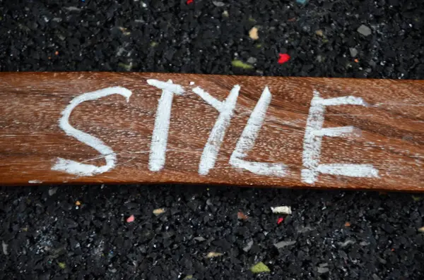"Gri arkaplandaki tahta harflerden yapılmış". Yazı alfabeyle yazılmıştır..
