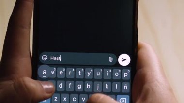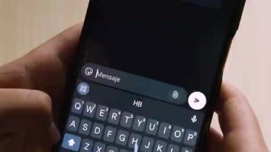 Akıllı telefonu tutan bir elin yakın çekimi, "Muchas gracias!" ifadesiyle mesajlaşma uygulamasını gösteriyor. İspanyolca yazılmış..