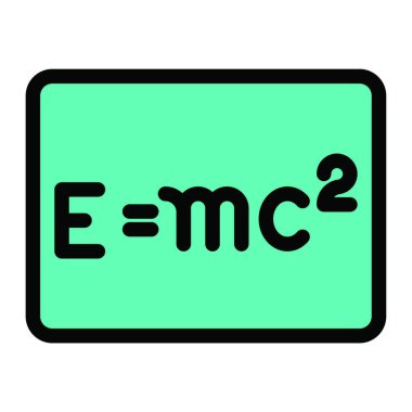 E mc2 formüllü siyah siluet simgesi, beyaz arkaplanda izole edilmiş. Eğitim, fizik, bilim, sınıf, öğrenme, teorik fizik konsepti.