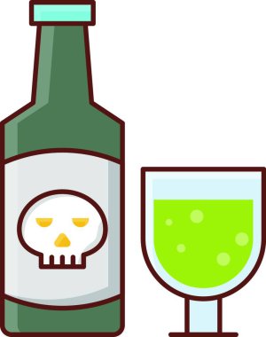Bir şişe soda ve bir şişe biranın yanına bir kafatası çizilir. Kafatası gülümsüyor ve ağzında bir pipet var.