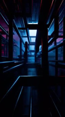"Karmaşık Boru Hattı İçinde Yolculuk", karmaşık bir boru hattından geçen dinamik bir 3 boyutlu hareket, parlayan devreler, görsel efekt animasyonu için mükemmel..