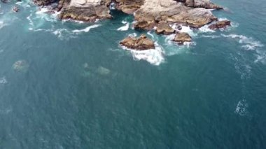 Güneş batarken nefes kesen Lunada Körfezi 'nin hava aracı görüntüsü okyanusun üzerindeki engebeli kayalıkları ve evleri aydınlatıyor, Palos Verdes Evleri, Kaliforniya