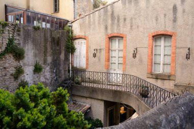 Taş merdiven ve yemyeşil sarmaşık Tivoli, İtalya 'daki Villa d' Este 'de tarihi bir binaya tırmanıyor.