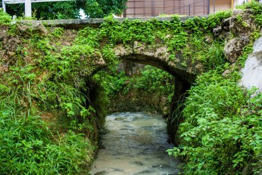 İtalya 'nın Tivoli kentindeki Villa d' Este 'deki yemyeşil alanda çağlayan bir çeşmesi olan tarihi bir taş merdiven.