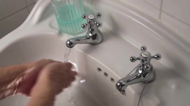 Bardağı lavabo musluğundan akan suyla kapat.