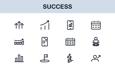 Gelişim Büyüme Çizgisi Simgesi Ayarlandı. İş Geliştirme ve Başarı İçin Modern Profesyonel Vektör Simgeleri