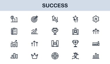 Gelişim Büyüme Çizgisi Simgesi Ayarlandı. İş Geliştirme ve Başarı İçin Modern Profesyonel Vektör Simgeleri