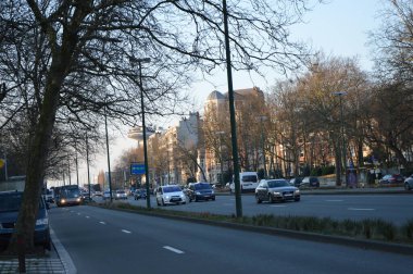 Varşova, Polonya - 2 Şubat 2025 Grojecka Caddesi 'nde trafik ve U dönüşü