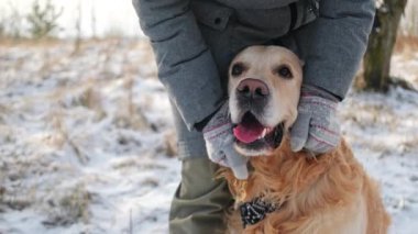 Kışın Altın Avcı Köpek Portresi Sahipleriyle Araba Bagajında Oturmak, Dikey Video