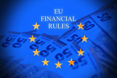 Hukuki kurallar ve yönetimi sembolize eden "AB Tüzüğü" metni bulunan Avrupa bayrağı.