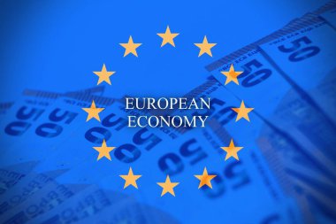 Avrupa bayrağı "AB Piyasaları" metniyle, finans piyasaları ve ekonomik faaliyetleri sembolize ediyor.